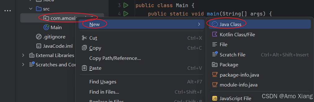 - 在包下创建 java 类,选择某个包,右键单击