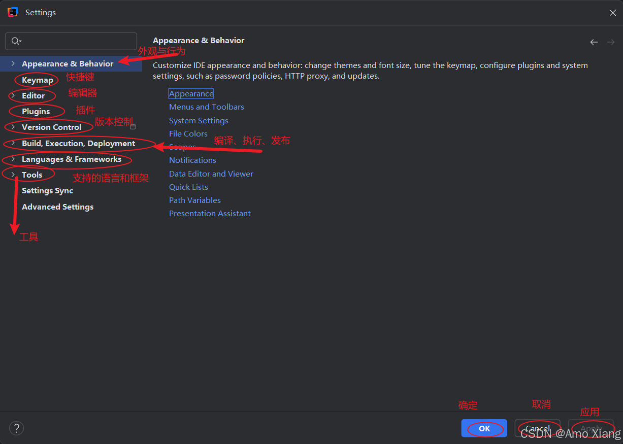 为了更好地使用 idea,最好还是在正式使用 idea 开发之前先做一些配置。idea 的所有详细设置都可以通过单击 "file" 菜单中的 "settings..." 打开详细设置界面,如下图所示: