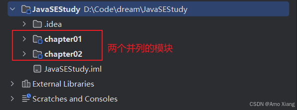 在前面已经创建了一个 java 工程,简单演示了 idea 最基本的使用。为了大家可以更好地学习 java 的内容,以及为后续学习实战项目开发打基础,本节会演示一个 project(项目)下包括多个 module(模块)的使用方法。