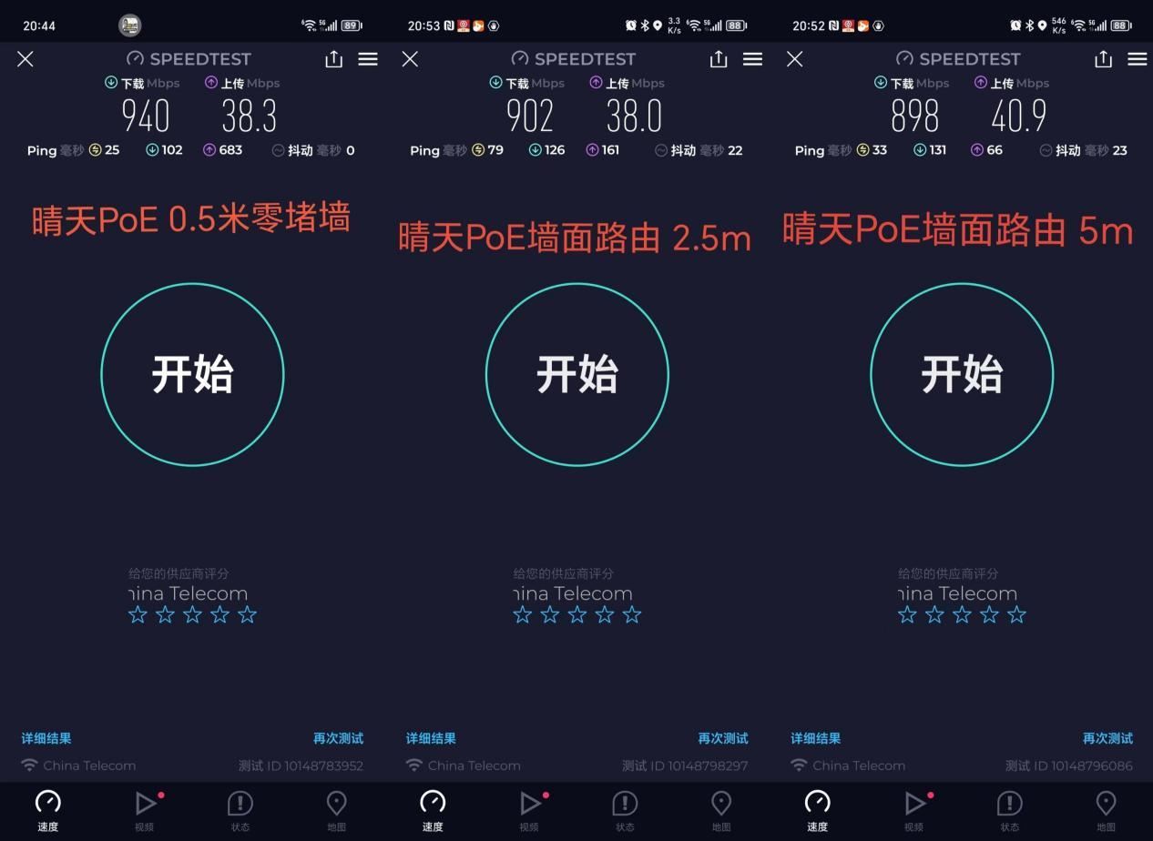 晴天poe墙面路由是中兴面向预埋了网线的用户打造,子路由相比传统ap+ac模式要大。但毕竟为了颜值考虑为内置网线,因此峰值速度、物理距离和穿墙后的衰减都要比常规路由器要大一些。好在墙面路由多为一拖二或三的模式,多态子路由搭配,信号基本在5m内、穿墙也多为一两堵,因而可以实现全屋wifi都比较好。