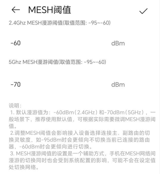 做到这个困难主要是在路由器信号交叉覆盖的区域,需要设置合适的mesh阈值,从而能够自动连接到网速更高的路由器。mesh阈值出厂有默认值,如果发现体验不够舒服,可以进行单独设置,从而拥有完全贴合实际需求的体验。