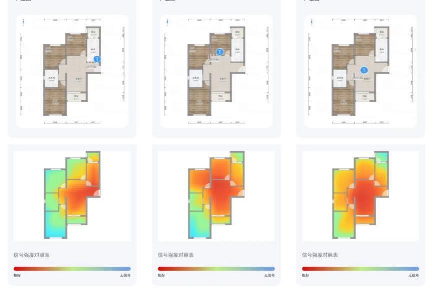 然后将路由器摆放在不同位置,就能得到全屋覆盖情况及变化,从而选出最适合的路由器位置。