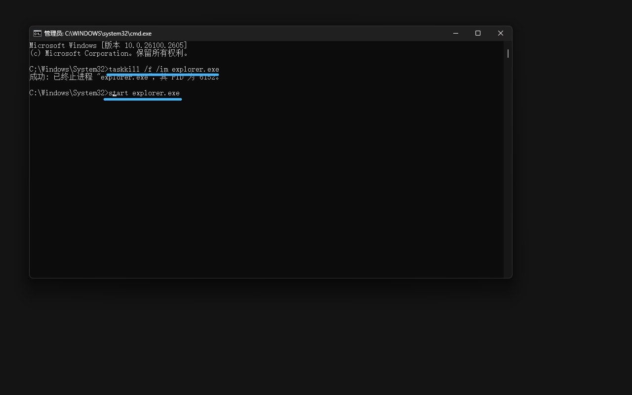 运行完以上命令后,任务栏、桌面以及其他 windows 视觉元素都会重新加载,「文件资源管理器」也会恢复正常工作。这种方式既快速又高效,特别适合喜欢用命令行的小伙伴!