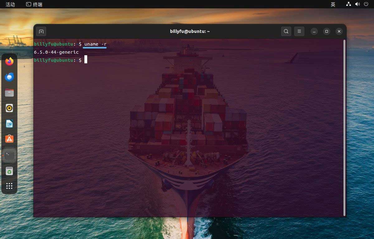 3、重启完成后,在「终端」中执行以下命令查看内核版本,验证安装是否成功: