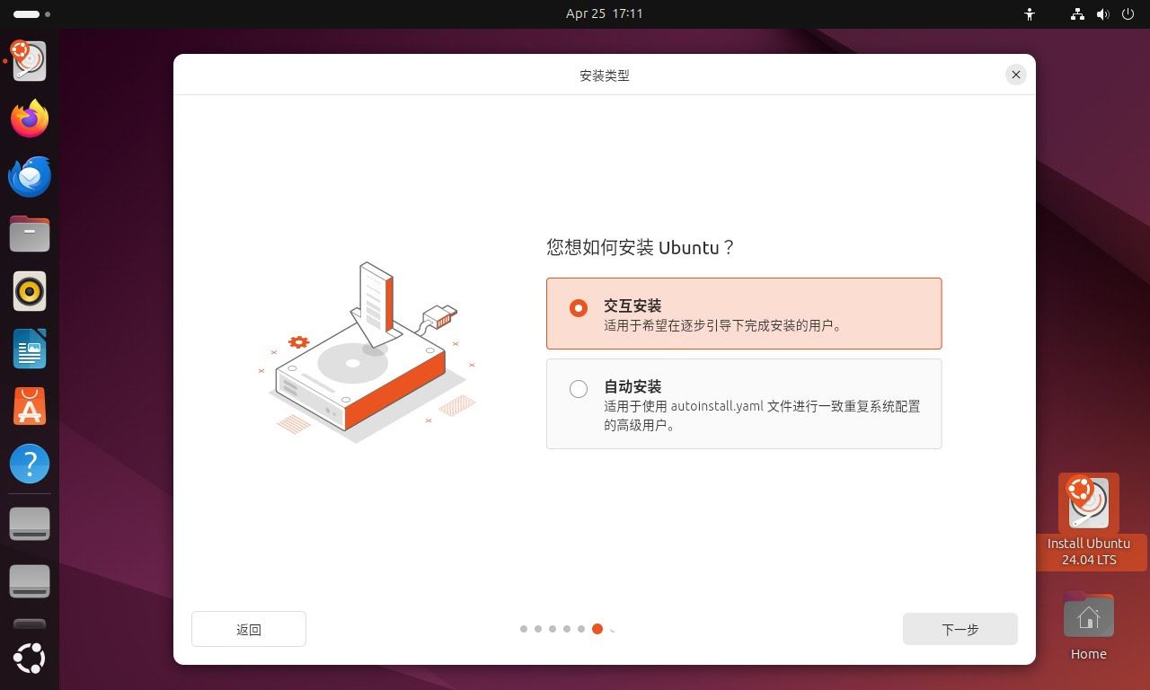 ubuntu 24.04 lts 安装界面:安装类型