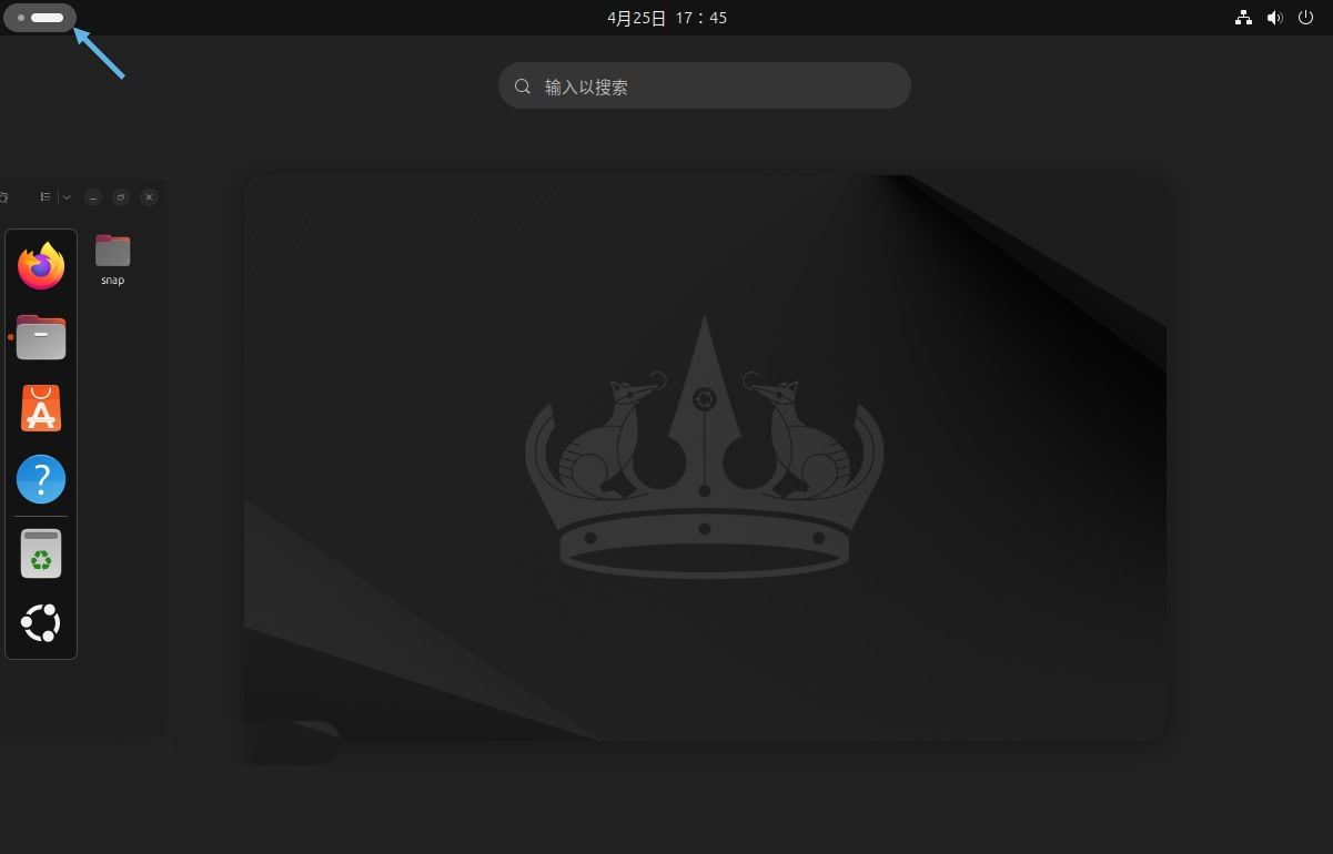 顶部栏左侧原有的「活动」标签现已更新,变成了更加简洁的「药丸」形状动态工作空间指示器。这个新指示器能更直观地显示当前打开的虚拟工作空间数量,以及你目前所处的工作空间。