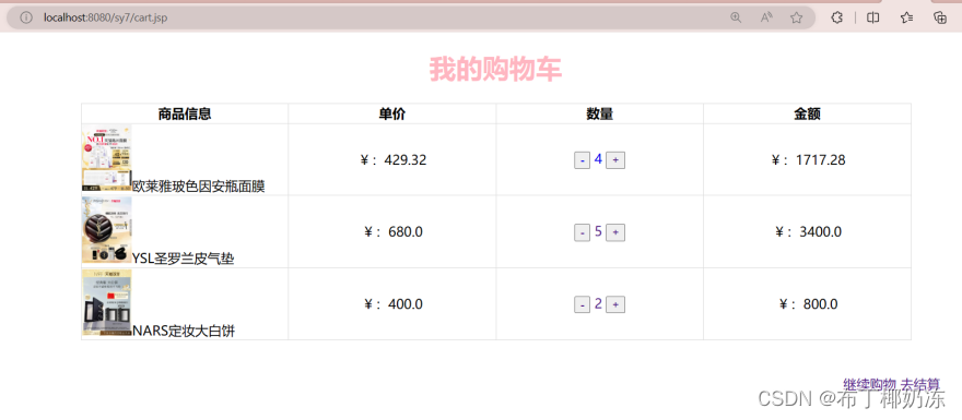 到此这篇关于javaweb程序设计之jsp实现购物车功能的文章就介绍到这了,更多相关jsp实现购物车功能内容请搜索代码网以前的文章或继续浏览下面的相关文章希望大家以后多多支持代码网!
