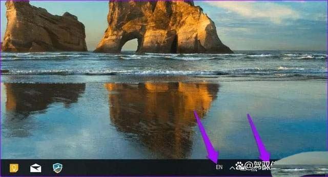 4、以下是任务栏的外观。第一个图标用于语言栏,第二个图标用于输入指示。