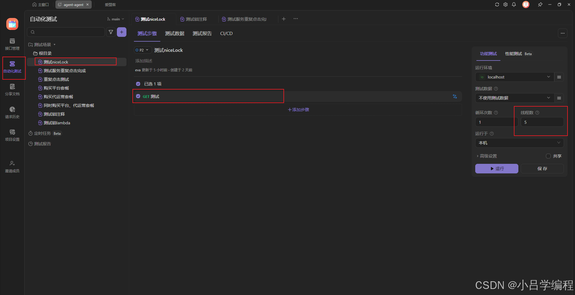 apifox中的自动化测试中可以配多个线程同时执行接口,测试重复点击是否生效