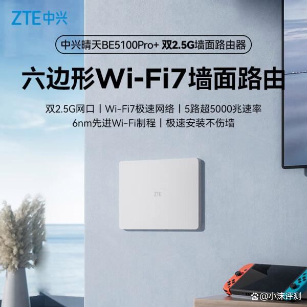 中兴【晴天墙面路由器】be5100pro+支持wi-fi 7技术,带宽高达5000mbps,能够通过双2.5g网口实现快速有线连接,确保数据传输迅速且稳定。它搭载的6nm wi-fi 7芯片可连接高达512台设备,这样先进的技术让用户在多设备使用时也能保持流畅体验,功耗低、性能稳定。
