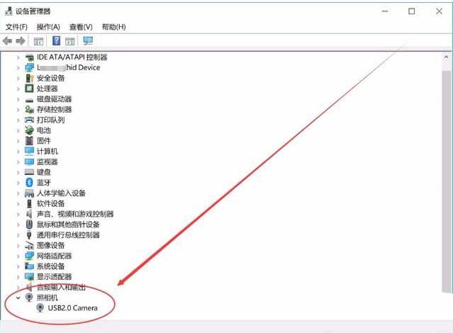 2、设备管理器窗口中,展开照相机选项,会显示摄像头的驱动型号。
