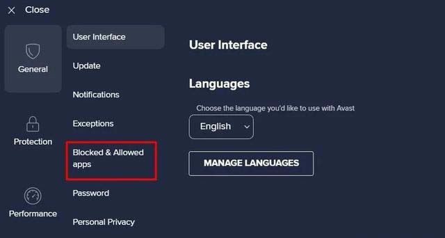 单击左侧边栏中的“阻止和允许的应用程序”选项。
