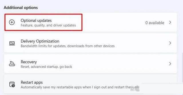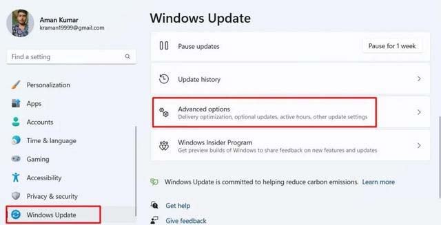 要更新相机驱动程序,请打开“设置”应用程序,单击“windows更新”,然后在右侧窗格中选择“高级选项”。
