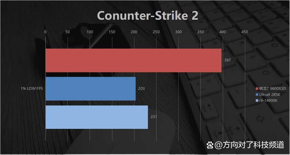 大家也可以看出来,笔者更倾向于拿14900k来与本次评测的主角锐龙7 9800x3d去对比,这也是没办法,ultra9 285k尽管在功耗方面有了很大的进步,但游戏性能开了倒车也是不争的事实,凭实力靠边站了属于是。不过即使我们拿游戏表现更强的14900k来挑战锐龙7 9800x3d,也丝毫不能挽回酷睿阵营的颓势,27%-53%帧率差距,游戏体验已经可以说是完全不同的两个游戏了,说锐龙7 9800x3d是断崖式领先一点都不过分。