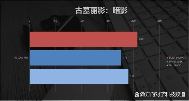 《古墓丽影:暗影》这里,三者差距相对小了一些,锐龙7 9800x3d领先14900k在21%左右。值得一提的是,在这款游戏中,锐龙7 9800x3d的大部分渲染时间都低于rtx 4090,这代表着,rtx 4090居然成了拖后腿的瓶颈,在新一代高端显卡出来之后,锐龙7 9800x3d的游戏表现很可能还能上一个台阶。