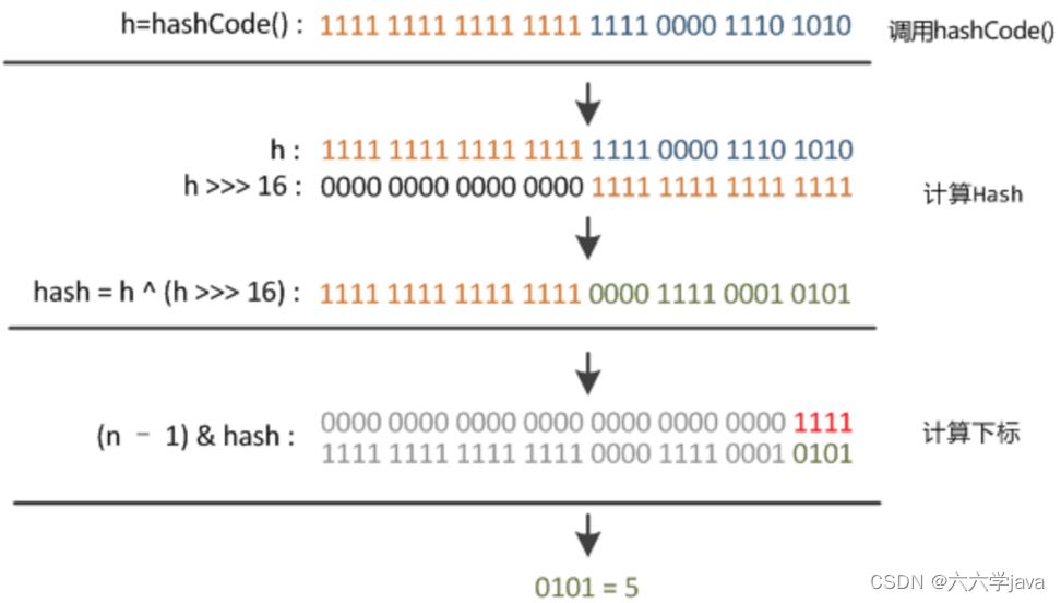 // h = key.hashcode() 为第⼀步 取hashcode值