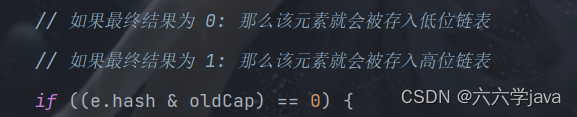 if ((e.hash & oldcap) == 0) {
