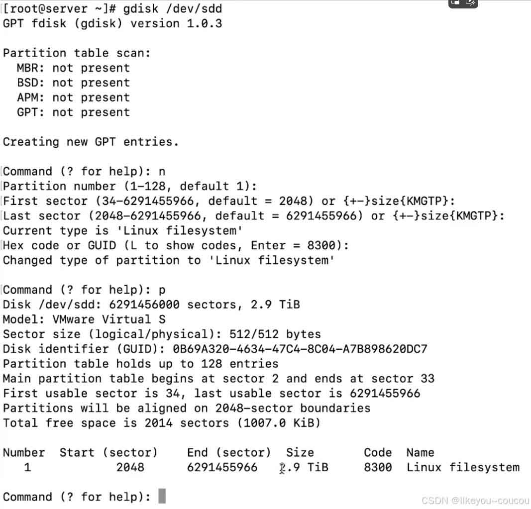 如果想采用gpt(guid partition table)的方式进行分区就使用gdisk命令