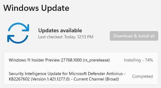 Win11 Canary 27768 预览版发布:附KB2267602完整更新日志