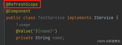 2、但是如果bean上有@refreshscope注解,则其中的@value属性值会随配置更新而更新。