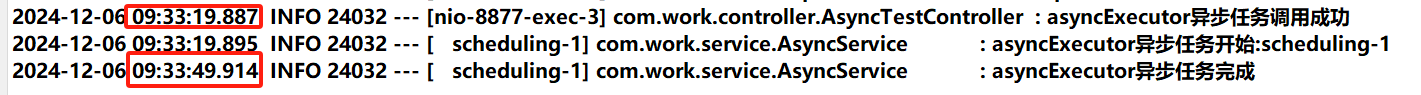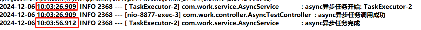 }异步方法休眠30秒,可以看到控制台打印的日志