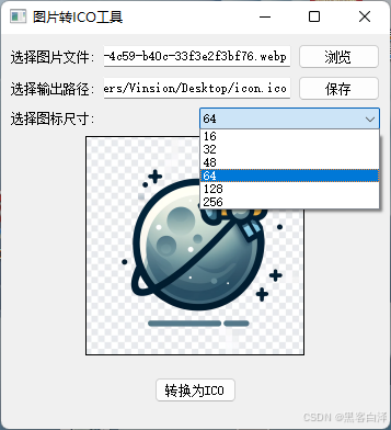 这个工具实现了一个基于pyqt5的用于将图像文件(如png、jpeg、bmp、gif)转换为ico格式gui应用程序。以下是该工具的功能介绍: