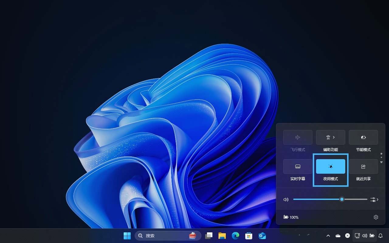 2、通过「夜间模式」开关,快速打开和关闭该功能。