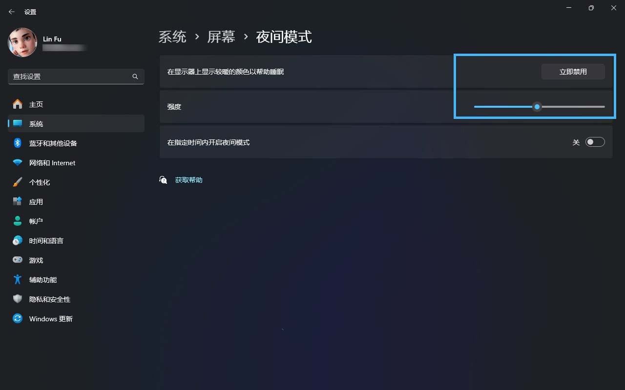 要适应夜间模式的屏幕暖色温可能需要一些时间,但开启这一功能绝对是值得的。特别是在深夜工作的时候,它可以有效减少眼部疲劳,保护你的眼睛。推荐在晚上,将夜间模式与 windows 11 的深色模式配合使用。