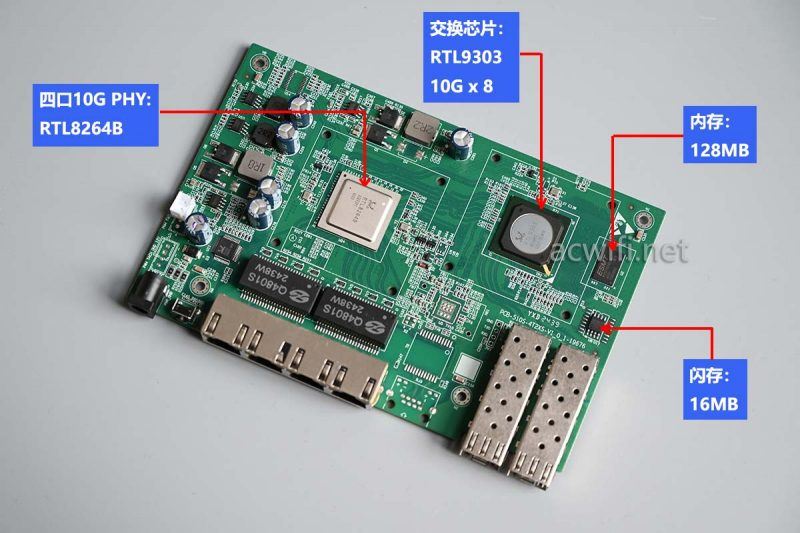 这里有空焊盘,估计可以加颗rtl8261就能多个10g电口: