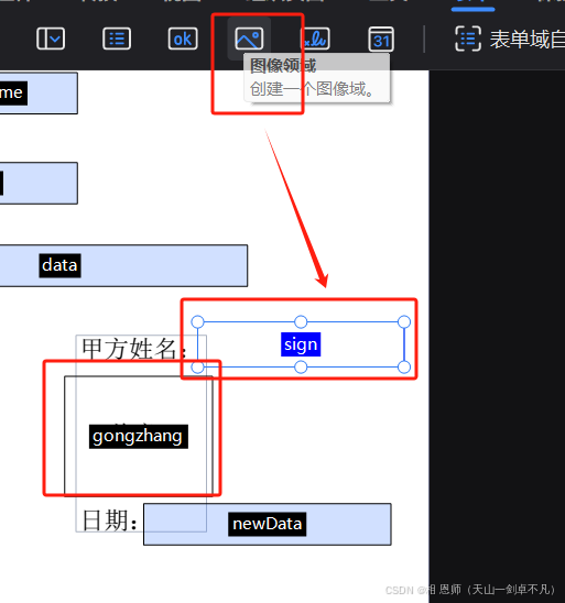 然后在添加图片表单,操作和文字一样,吧需要放图片的地方圈出来命名