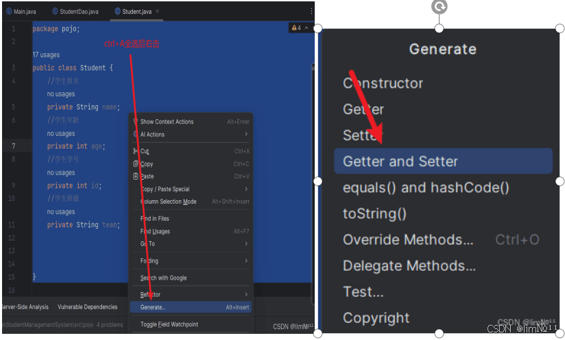以便我们在实现方法时更好调用和处理集合中的每一个学生对象*/