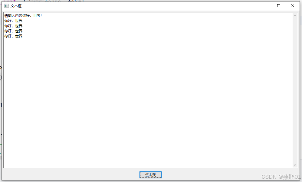 当按钮被点击时,这个方法将被调用。它向文本框中添加了一行文本"你好,世界!"。