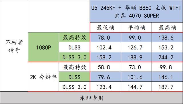 ▲ 《不朽者传奇》游戏实测,游戏支持 dlss 3.0 ,可以获得更好的游戏流畅性。u5 245kf + 华硕 b860 重炮手 wifi + 索泰 rtx4070 super 的组合可以完美地在 2k 分辨率下开启最高特效与 dlss 3.0 ,获得非常出色的光影效果与游戏流畅性。