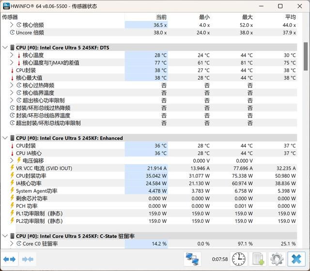 ▲ 运行 dota2 播放录像 5 分钟,实测最高功耗为 75.338w,比 9600x,更远低于 14600kf。最高温度仅有 44 ℃。
