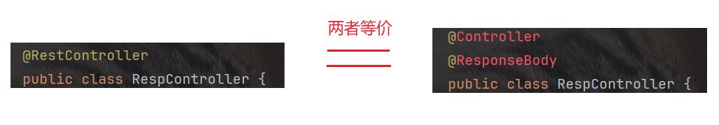 由于 @restcontroller = @controller + @responsebody, 因此, 左右两侧的注解效果相同: