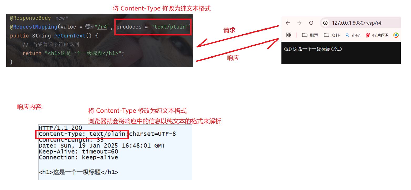 @requestmapping(value = "/r4", produces = "text/plain") // 修改 content-type 为纯文本格式