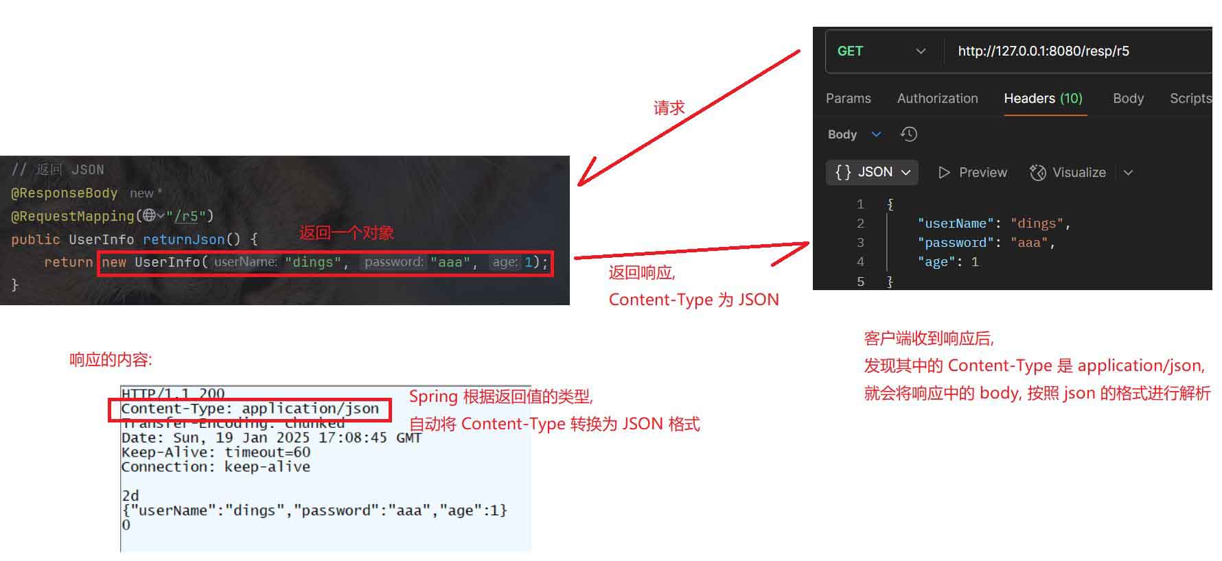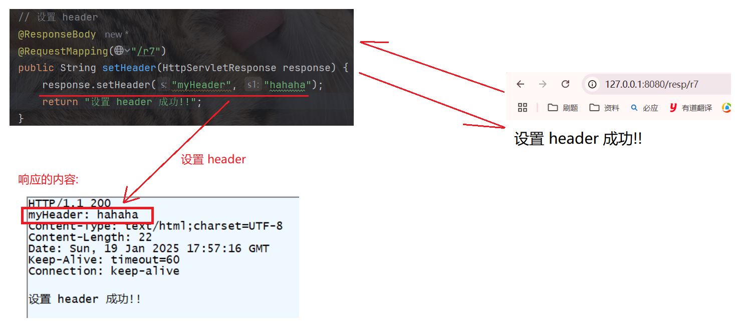 本篇文章介绍响应相关的知识, 通过 spring 来设置响应中的值, 向客户端返回设置好的响应.