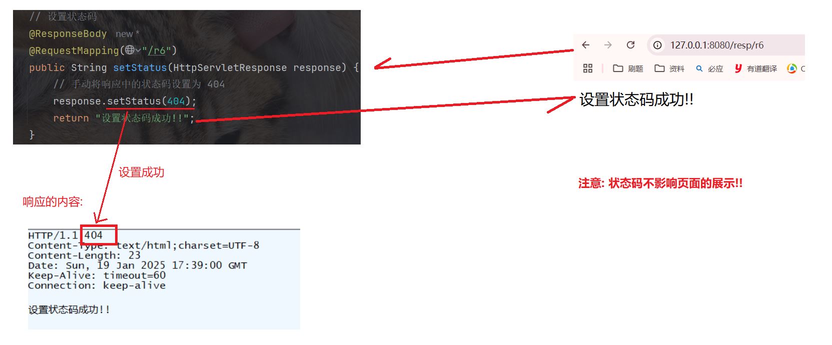 }注意: 状态码不影响页面的展示!!