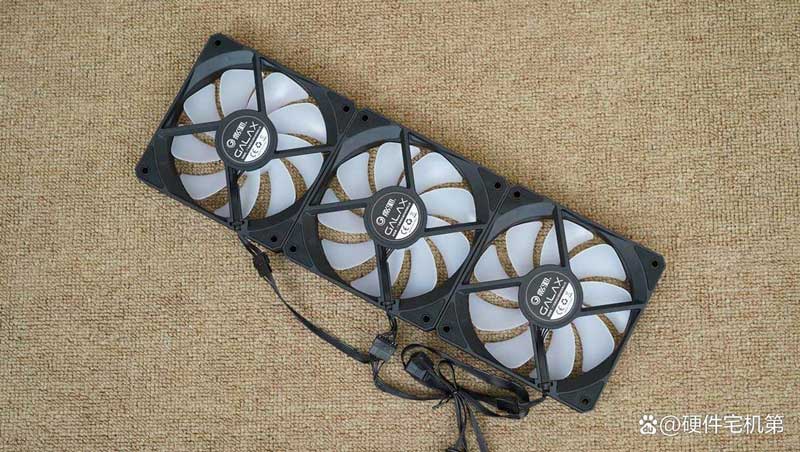 散热器标配了3把12cm风扇,该风扇也采用了星曜系列特有的钻石切割设计,配合扇叶的argb灯效,能够让光线的反射效果更强,灯效更加璀璨夺目。