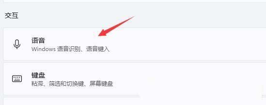 6、右侧交互下,找到【语音(windows 语音识别、语音键入)】进入;
