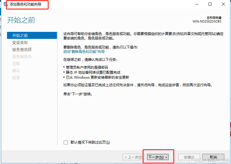 3、进入“添加角色和功能向导”,点击“下一步”;
