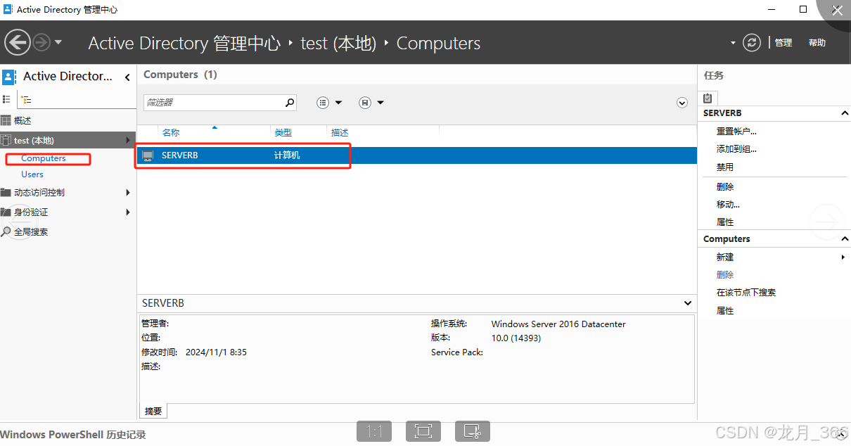 2、在servera服务器域管理工具会出现serverb的服务器信息,如下图;