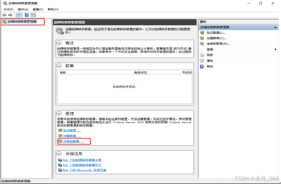 1、打开“故障转移群集管理器”,点击下方的“验证配置”;