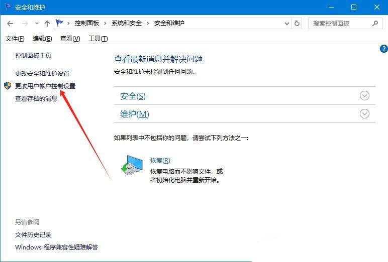 3、然后,点击左侧的“更改用户账户控制设置”。