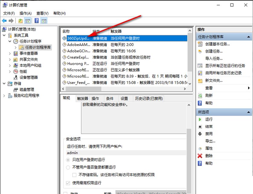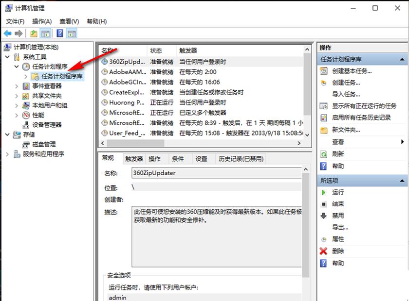 4.在“任务计划程序库”的页面中,我们任意选择一个选项。