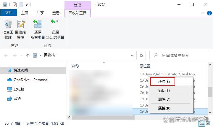 2、从回收站还原xlive.dll