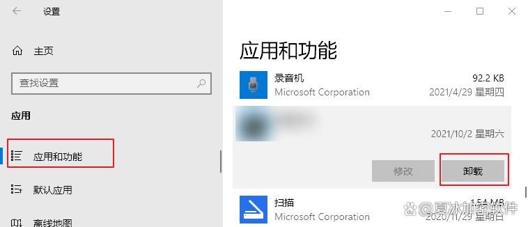 步骤2:选择左侧的【应用和功能】,之后在右侧的应用程序列表中找到出现问题的应用程序,点击其名称,选择【卸载】按钮。之后请打开该应用程序的官方网站进行下载安装。