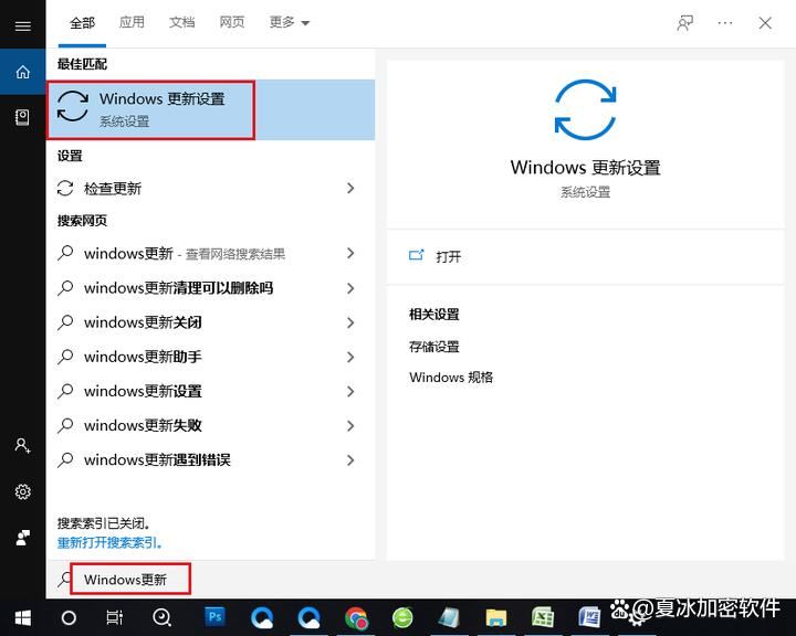 步骤1:运行计算机,在左下角搜索框内查找【windows更新设置】选项并点击进入。