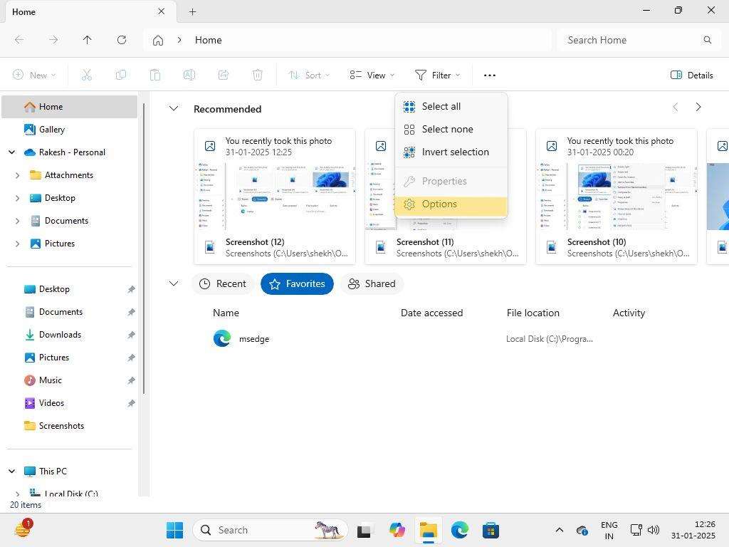 要启用此功能,需在“文件夹选项”菜单的“隐私”设置下,勾选“显示推荐版块”和“包含基于账户的见解、最近、收藏夹和推荐文件”。