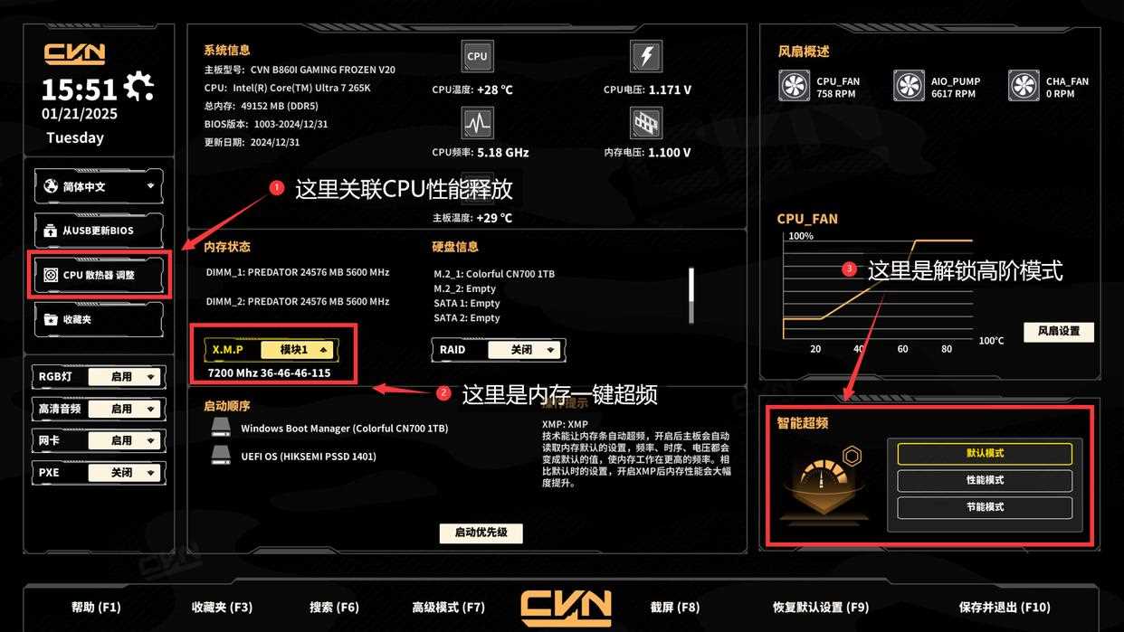 这代七彩虹bios改动非常多,大概率常规z板的bios也会用这套设计,建议感兴趣的朋友收藏下,配置流程是相通的。